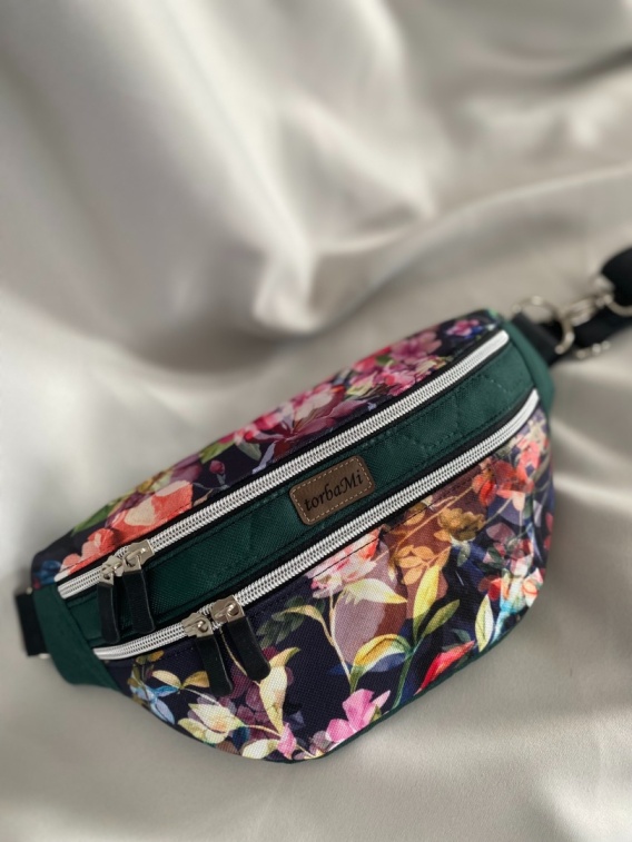 Jesienny akcent w Twojej garderobie 馃槉 czyli pojemna, praktyczna saszetka uszyna z tkanin wodoodpornych w kolorze g艂臋bokiej jesieni oraz z nadrukiem wielobarwnych kwiat贸w, w 艣rednim rozmiarze